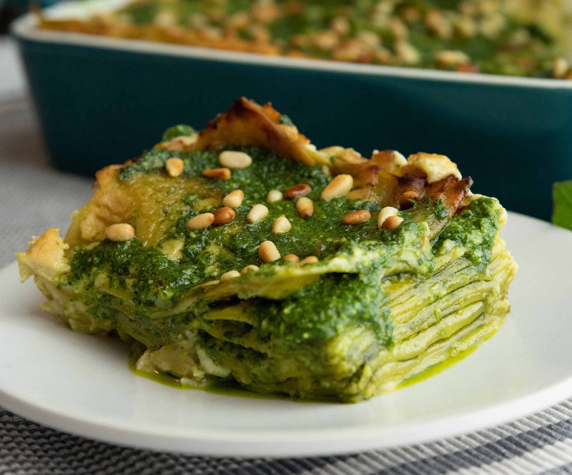 Glutenfreie Lasagneplatten aus Grünen Linsen, Erbsen und braunem Reis. Reich an Eiweiß und Geschmack, einfach ungekocht in die Lasagne schichten.